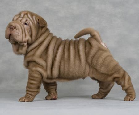 shar-pei (shär′pā′)n. pl. shar-peis A Chinese shar-pei.[Cantonese saa1 pei4 (equivalent to Mandarin shāpí, literally, sand skin, in reference to the short rough coat typical of the breed) : Cantonese saa1, sand (from Middle Chinese ʂa⋮) + Cantonese pei4, skin (from Middle Chinese pɦi).]